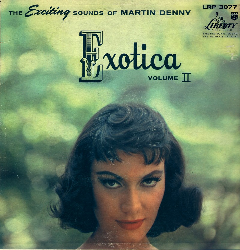 The Exciting Sounds of Martin DennyIn Exotica Volume I, Martin Denny produced sounds of such a fabulous nature as to titilate Hi Fi afecionados the world over. From the Persian Gulf to the Savoy Plaza, letters of praise and exclamation came pouring into us here at Liberty . . . "How were these sounds reproduced?" . . . "What type of primitive instrumentation did he use?" "Was it recorded in the Continental United States?" . . . "Did Liberty send a crew to the South Seas?" . . . And so many more questions we can't begin to list them all . . . Some inquiries were of a highly technical nature from laboratory experts and denizens of the "components" school, etc.